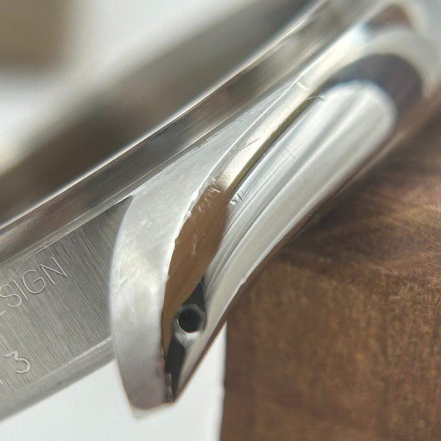 - Wiederherstellen des originalen Schliffbildes am Gehäuse und Armband durch Lapidieren und/oder Satinieren
